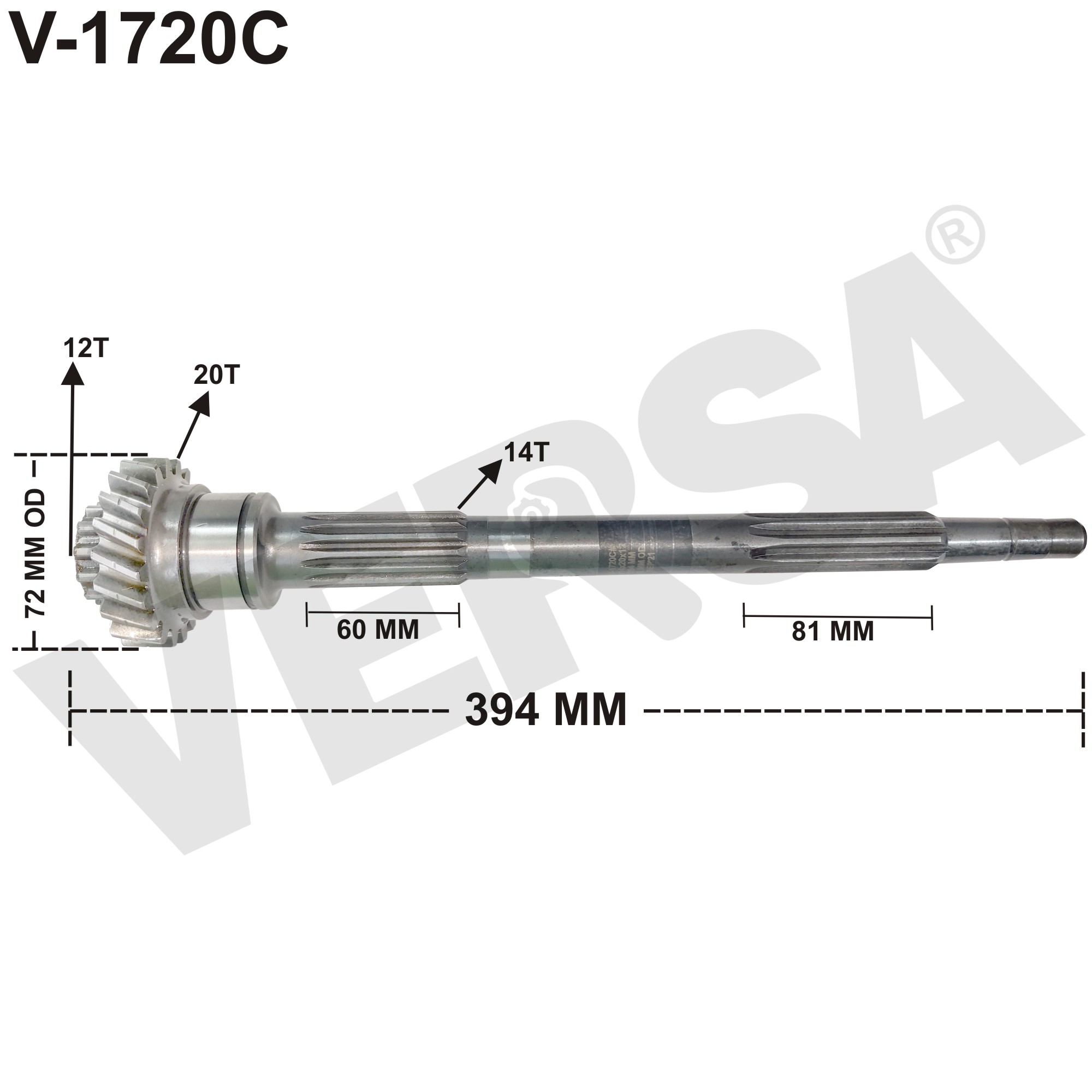 Clutch Shaft 20T – Swaraj 735 XM/834 XM Middle Spline 14, 394 MM, 72 MM OD
